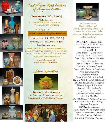 Everyone here is gearing up for the Celebration of Seagrove Potters. The Friday night Gala is selling tickets and getting great response. We have our booth number and somehow picked the same number as last year.