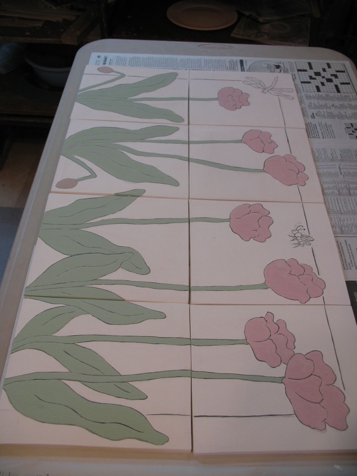 How beautiful. Question: how do you wax right after the pencil drawing? What part gets waxed before you apply glaze? And then how do you glaze over wax? I've been doing tulips on a bunch of mugs this week. Hope your tiles come out!